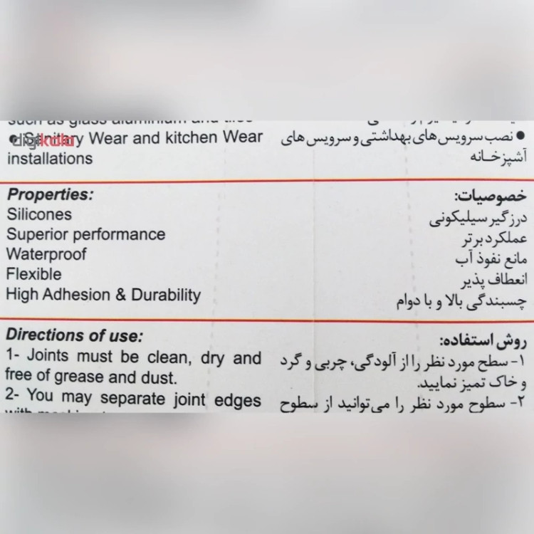 🧱 چسبندگی مؤثر روی سطوح مختلف نظیر فلز، شیشه، سرامیک، آلومینیوم و...