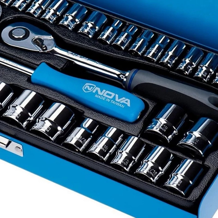 مجموعه 40 عددی جعبه بکس 1/4 و 3/8 اینچ با سطح فول پولیش نووا تایوانی مدل 7002