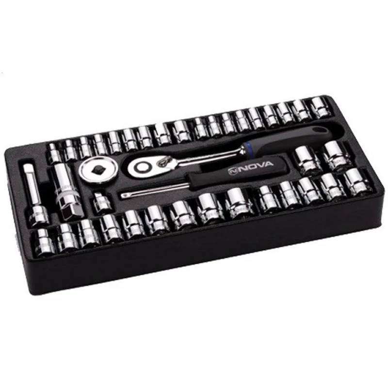 مجموعه 40 عددی جعبه بکس 1/4 و 3/8 اینچ با سطح فول پولیش نووا تایوانی مدل 7002