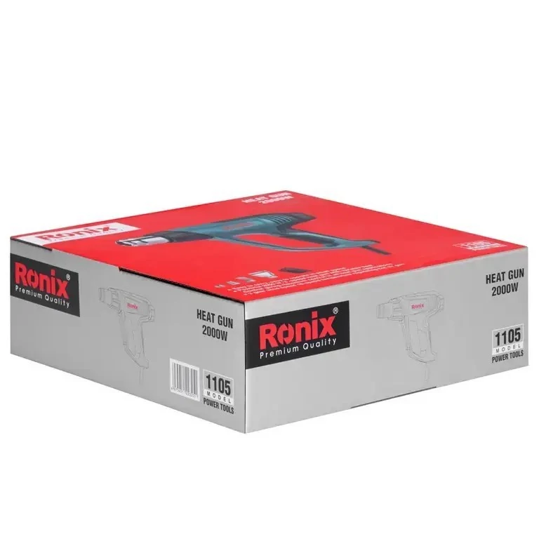 ارائهشده در جعبه رنگی رونیکس همراه با یک عدد پوشش محافظ در برابر دمای بالا و سوختگی، یک عدد نازل مخروطی، یک عدد نازل دم ماهی، یک عدد نازل متمرکزکننده و یک عدد نازل محافظ شیشه