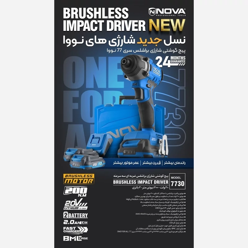 پیچ گوشتی شارژی 20 ولت براشلس نووا مدل 7730 (24 ماه گارانتی )