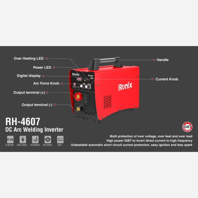 دستگاه جوش (اینورتر جوشکاری) 200 آمپر رونیکس مدل 4607 (12 ماه گارانتی)