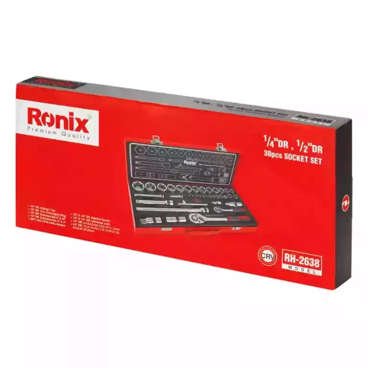 جعبه بکس 38 پارچه 1/2 و 1/4 اینچ تایوانی رونیکس مدل RH-2638