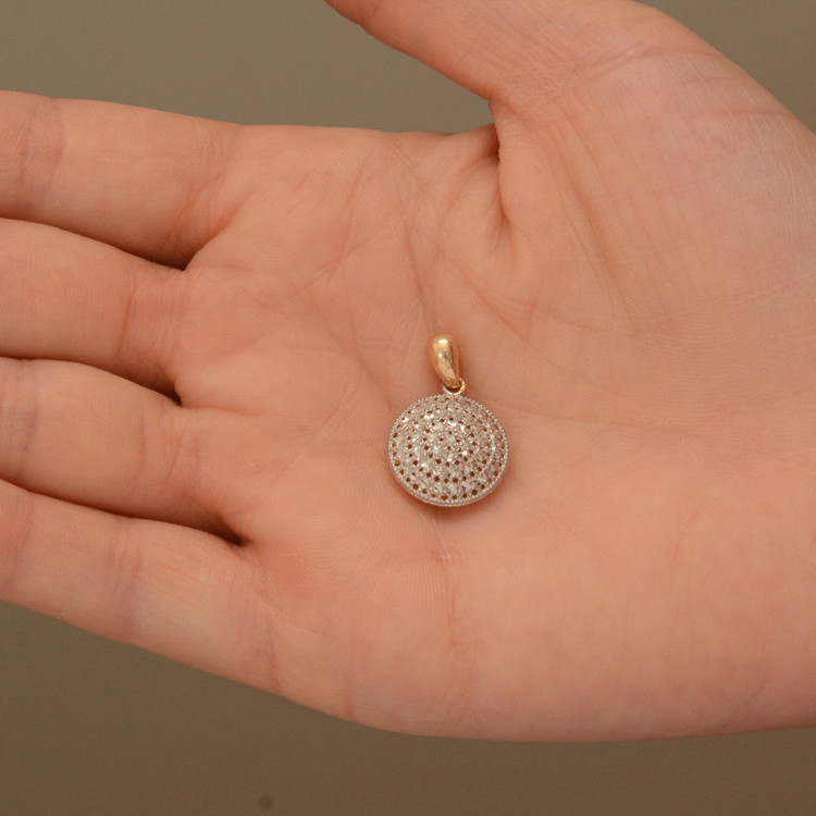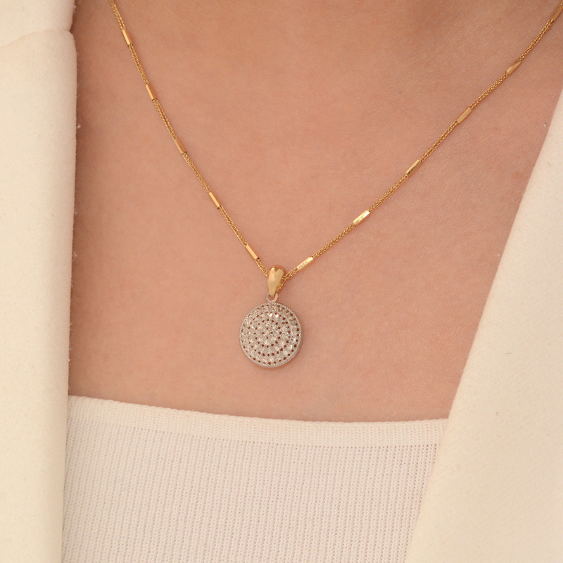 آویز فاقد نگین است.قسمت های سفید کار شده در آویز تراش است.