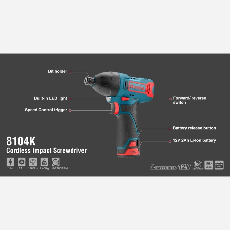 پیچ گوشتی چکشی شارژی K8104 رونیکس، با برخورداری از تمام مزایای یک ابزار تخصصی باکیفیت و قدرتمند، انتخابی بیرقیب در میان محصولات مشابه موجود در بازار ایران است.