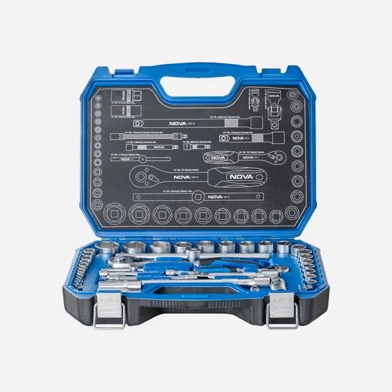 جعبه بکس 1/2 و 1/4 اینچ 44 پارچه سطح کروم مات نووا مدل 6685