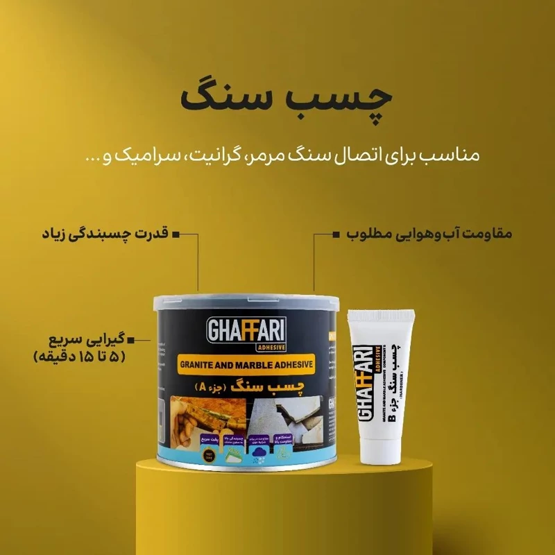 این محصول جهت اتصال سنگ مرمر، گرانیت، سرامیک با اندازه بزرگ روی دیوارها و سرپوشها و در محیط های سرپوشیده و باز مناسب است.