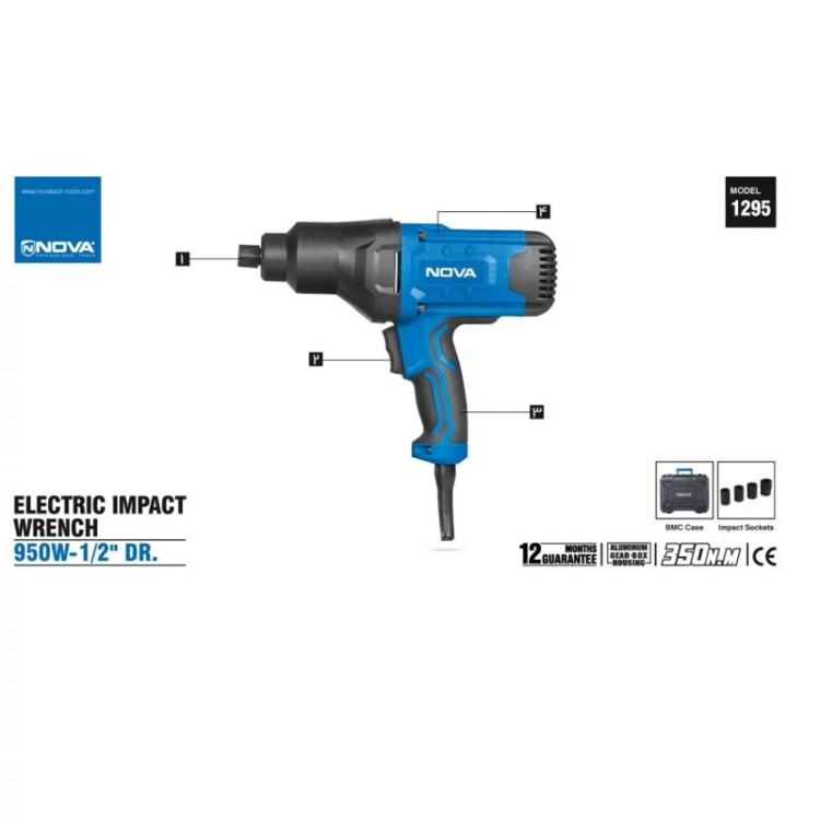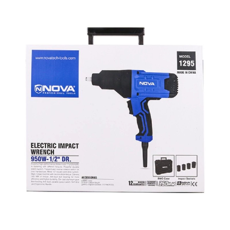 بکس برقی 1/2 اینچ 950 وات نووا مدل 1295، جهت باز و بسته کردن انواع پیچ و مهره های شش گوش و مهره های صنعتی و خودرو ساخته شده است که از بهترین و باکیفیت ترین قطعات همراه با ویژگی های منحصر به فرد تولید و به بازار عرضه می شود. این ابزار دارای عایق دوجداره مطابق با استاندارد اروپا است که به واسطه آن امکان استفاده از دستگاه بدون اتصال به زمین فراهم می شود.توان موتور بکس برقی 1/2 اینچ ، 950 وات می باشد و از آرمیچر و بالشتکهای صنعتی مطابق با استانداردهای روز دنیا،تولید شده است.