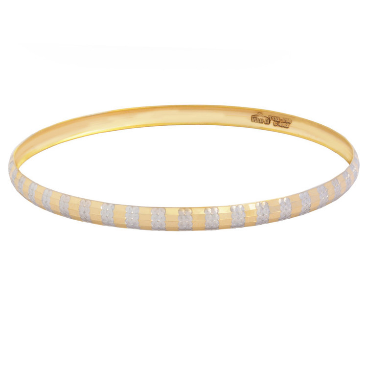 سایر توضیحات: النگو مناسب سایز سه است.قسمت های سفید کار شده در النگو تراش طلا سفید است.
