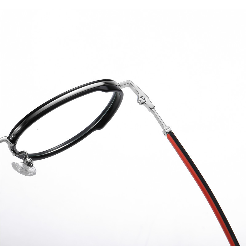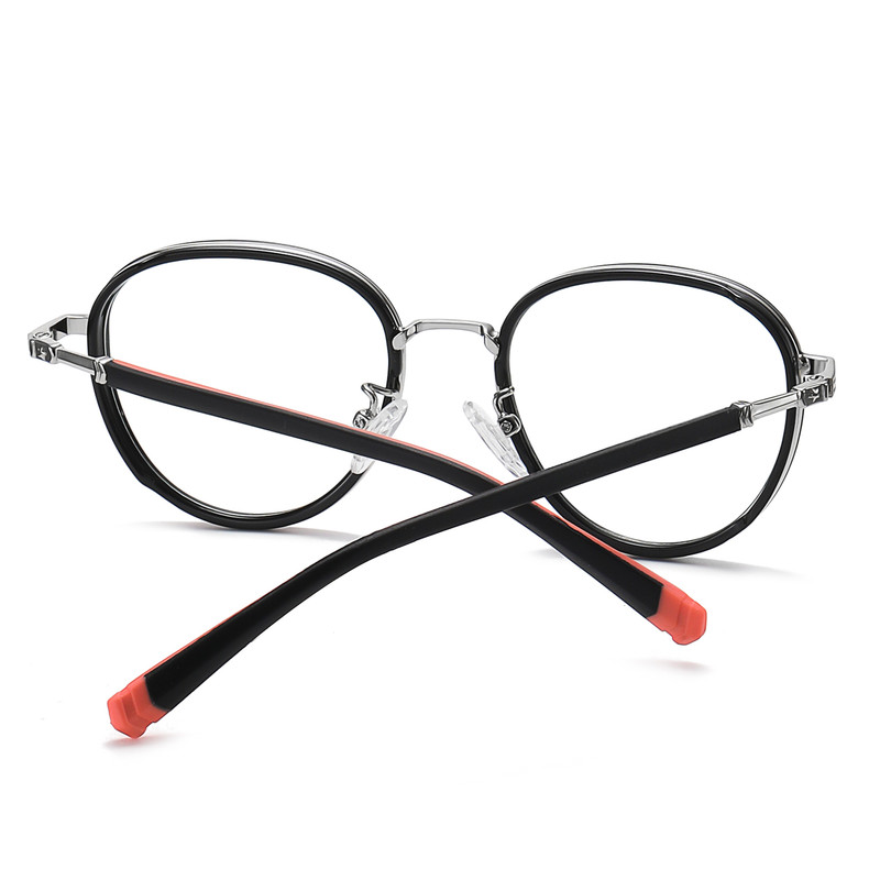 فریم عینک طبی دخترانه و پسرانه مدل TR-ZC826-C05 TR Metal دارای فریم و دسته ها از جنس TR90 و فلز میباشد که علاوه بر وزن بسیار سبک 19.7 گرم انعطاف و مقاومت بسیار بالایی دارد و در دسته فریم های نشکن قرار میگیرد. این فریم استاندارد CE از اتحادیه اروپا را نیز دارد. عرض عدسی 46 میلیمتر، عرض پل 18 میلیمتر و طول هر یک از دسته ها برابر ۱۳۰ میلیمتر میباشد. رنگ عینک مطابق تصویر اول و دوم آلبوم یعنی فریم مشکی و دسته های مشکی است و عکس های دیگر صرفا برای نشان دادن قابلیت ها و انعطاف فریم قرار داده شده است.