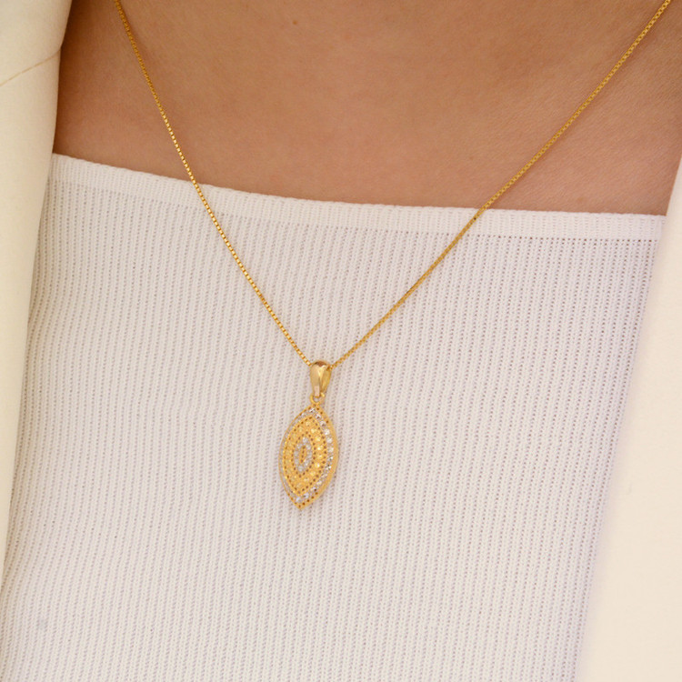 قسمت های سفید کار شده در آویز تراش طلا سفید است.