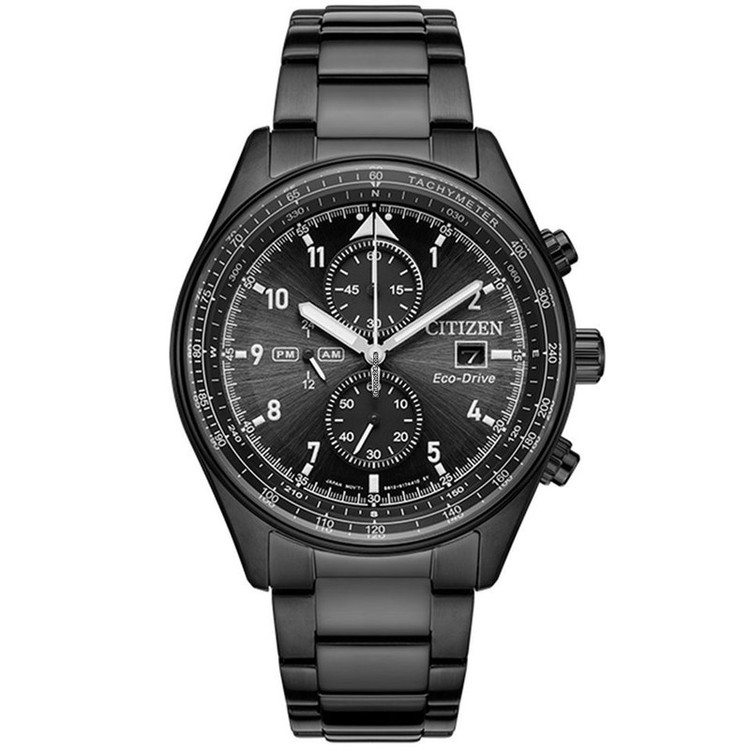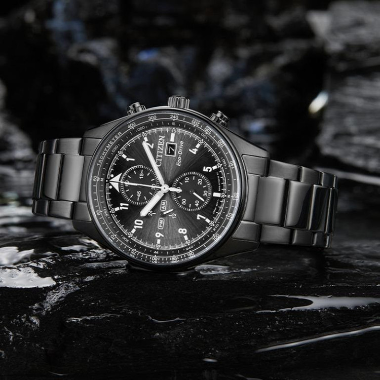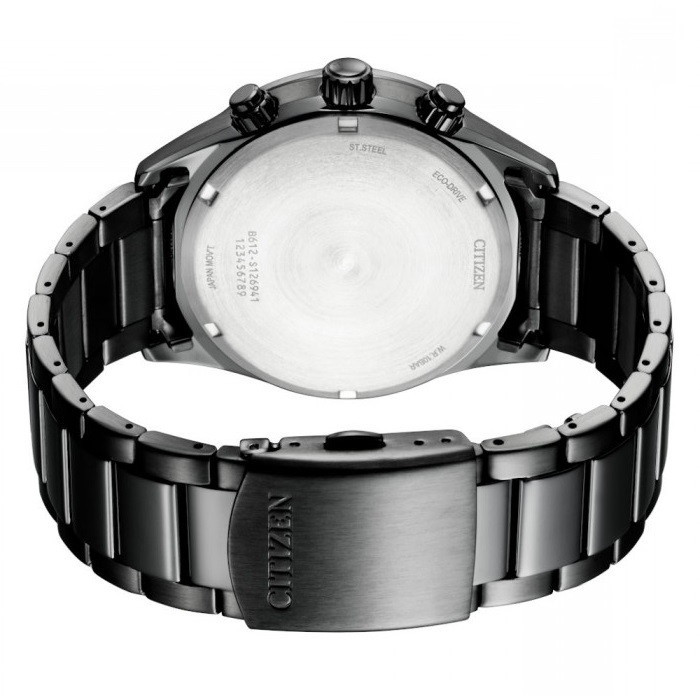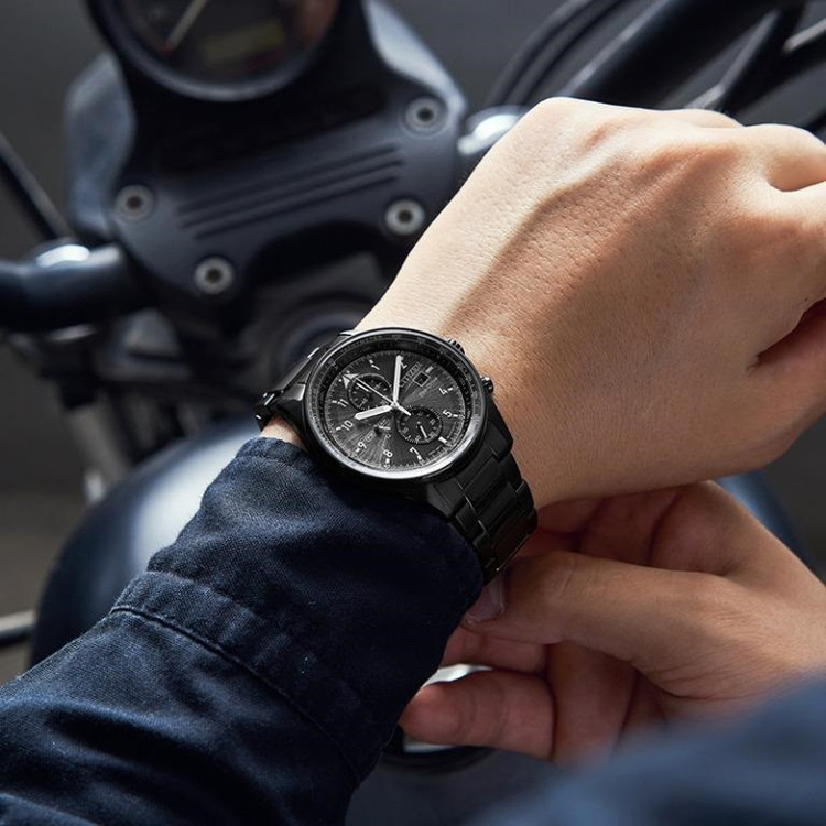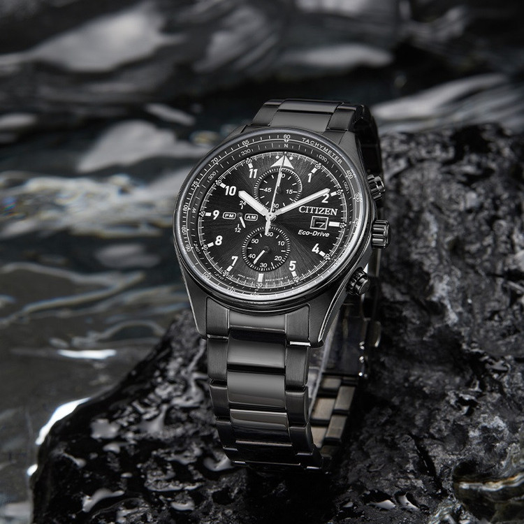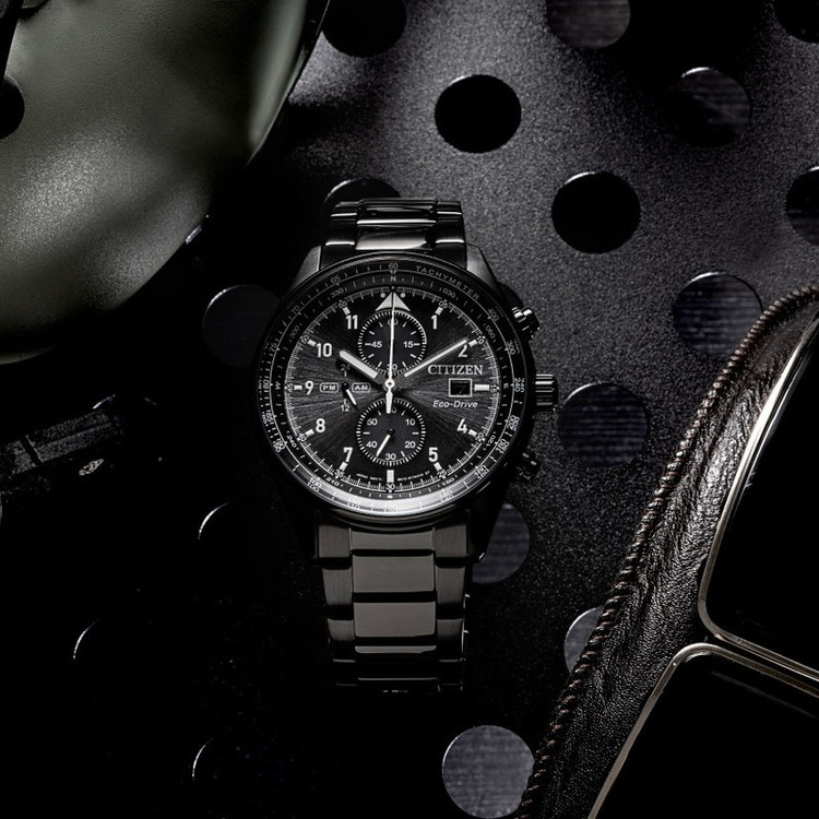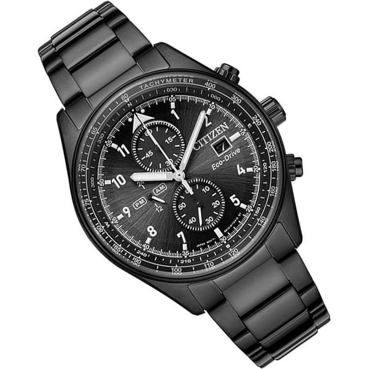 این مدل از ساعت مچی های برند سیتیزن اکودرایو بوده و قابلیت شارژ باطری با نور را دارد و دارای بدنه و بند با رنگ مشکی و صفحه مشکی رنگ می باشد. از امکانات منحصر به فرد این ساعت میتوان به کرنوگراف یا چند موتوره بودن آن، نمایشگر روزهای ماه و وضعیت 24 ساعته و ذخیره شارژ باطری تا 7ماه که تعبیه شده در این ساعت اشاره کرد. اکودرایو ها جزو ساعت های رده بالای شرکت سیتیزن هستند و در مدت بسیار کمی مورد پسند و تحسین مردم قرار گرفتند. اعداد کوچک دور این صفحه ی ساعت نیز سرعت سنج میباشد.