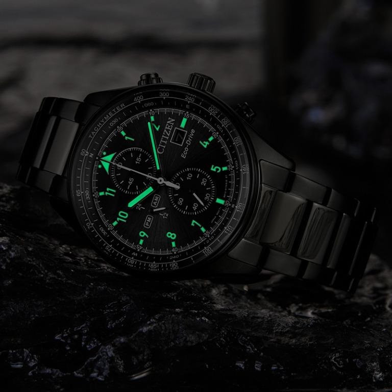 این مدل از ساعت مچی های برند سیتیزن اکودرایو بوده و قابلیت شارژ باطری با نور را دارد و دارای بدنه و بند با رنگ مشکی و صفحه مشکی رنگ می باشد. از امکانات منحصر به فرد این ساعت میتوان به کرنوگراف یا چند موتوره بودن آن، نمایشگر روزهای ماه و وضعیت 24 ساعته و ذخیره شارژ باطری تا 7ماه که تعبیه شده در این ساعت اشاره کرد. اکودرایو ها جزو ساعت های رده بالای شرکت سیتیزن هستند و در مدت بسیار کمی مورد پسند و تحسین مردم قرار گرفتند. اعداد کوچک دور این صفحه ی ساعت نیز سرعت سنج میباشد.
