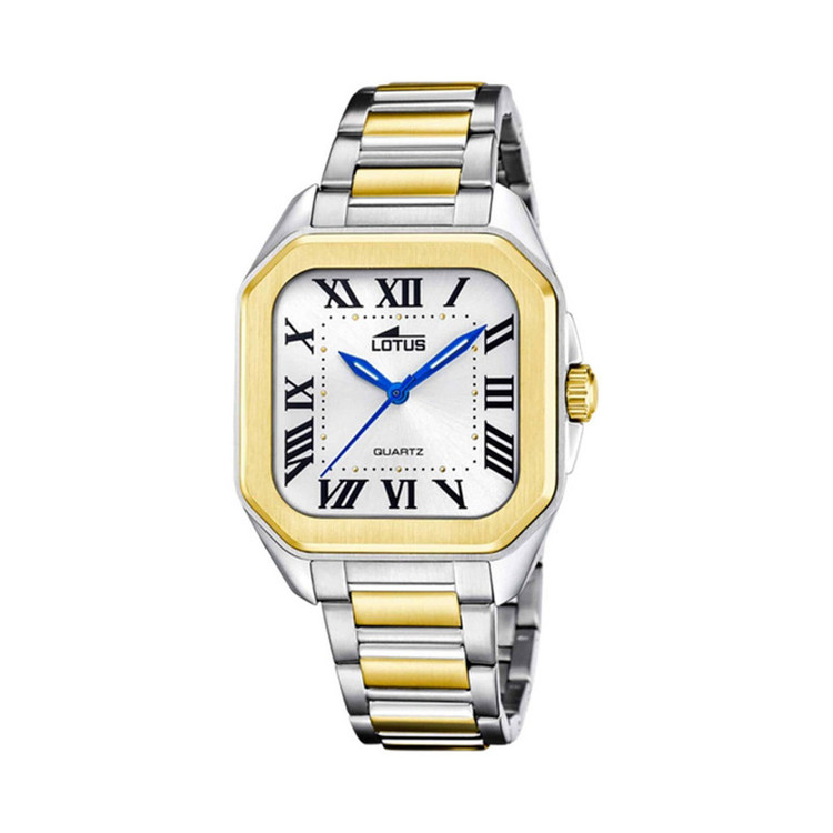 + موارد بیشترساعت لوتوس مدل L18969/1 یک ساعت زنانه با طراحی کلاسیک و شیک است که از برند اسپانیایی لوتوس (Lotus) تولید شده است. این ساعت با قاب مربعی شکل از جنس استیل ضد زنگ با قطر ۳۵ میلیمتر و ضخامت ۸.۳ میلیمتر، ظاهری ظریف و جذاب دارد. صفحه ساعت از رنگ نقرهای با بافت صدفی ساخته شده و دارای اعداد رومی مشکی و عقربههای آبی شبنما است که در نور کم قابل مشاهده هستند.