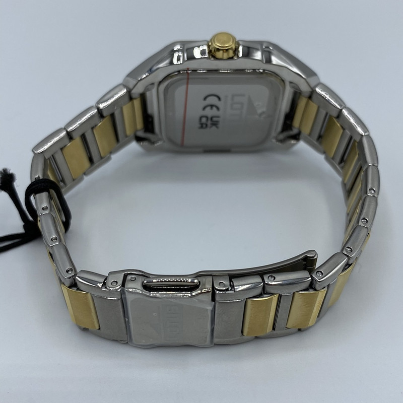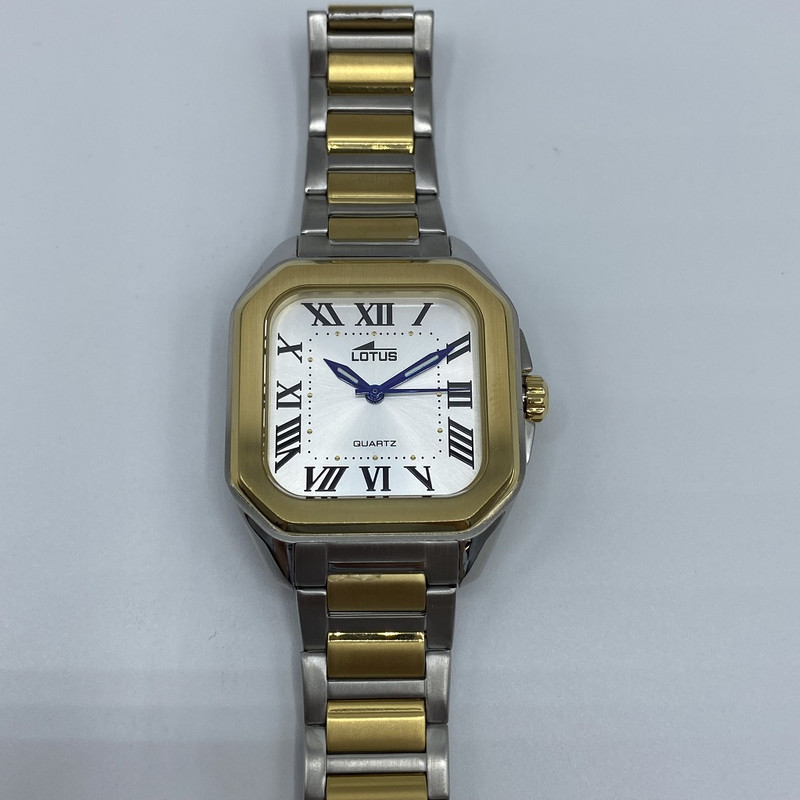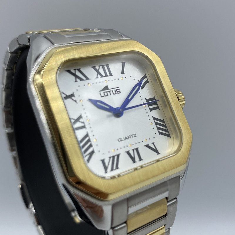 + موارد بیشترساعت لوتوس مدل L18969/1 یک ساعت زنانه با طراحی کلاسیک و شیک است که از برند اسپانیایی لوتوس (Lotus) تولید شده است. این ساعت با قاب مربعی شکل از جنس استیل ضد زنگ با قطر ۳۵ میلیمتر و ضخامت ۸.۳ میلیمتر، ظاهری ظریف و جذاب دارد. صفحه ساعت از رنگ نقرهای با بافت صدفی ساخته شده و دارای اعداد رومی مشکی و عقربههای آبی شبنما است که در نور کم قابل مشاهده هستند.