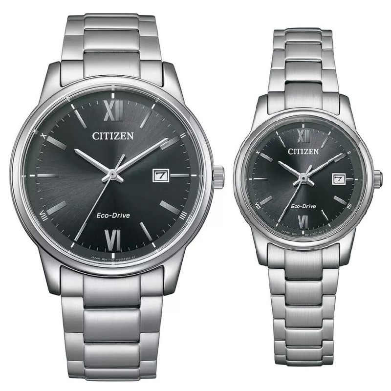 این طرح از ساعت مچی های ست زنانه و مردانه برند سیتیزن مناسب برای تیپ کلاسیک و مجلسی می باشد و اکودرایو بوده و قابلیت شارژ با نور را دارند. این مدل از ساعت های برند سیتیزن جزو ساعت های پرفروش این برند می باشد و دارای بند و بدنه استیل نقره ای با صفحه ی مشکی بوده و در عین ظرافت صاحب جذابیت و ابهت بی نظیری است. از ویژگی های منحصر بفرد این ساعت میتوان به ذخیره شارژ باطری تا 6 ماه و نمایشگر روزهای ماه اشاره کرد.