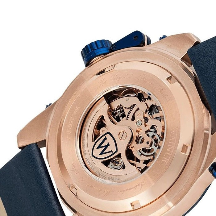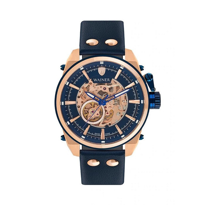 ساعتی خاص و ویژه از برندی خاص! ساعت اتوماتیک قلب باز واینر سوئیس اوج ساعت های لاکچری این برند میباشد که با بکار گیری از موتور درجه یک اتوماتیک سوئیسی که اجزای آن از صفحه ی ساعت پیداست( قلب باز یا اسکلتون) توانسته سرو صدای زیادی بپا کند. اجزای درون موتور این ساعت به شکل بسیار بسیار دقیق و حرفه ای آبکاری شده اند که به محض پوشیدن این ساعت ، چندین دقیقه چشمانتان را خیره میکند. به راستی که این ساعت دست ساز ، اثر هنری است!