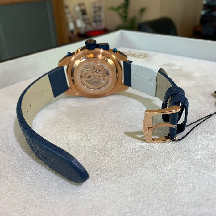 ساعتی خاص و ویژه از برندی خاص! ساعت اتوماتیک قلب باز واینر سوئیس اوج ساعت های لاکچری این برند میباشد که با بکار گیری از موتور درجه یک اتوماتیک سوئیسی که اجزای آن از صفحه ی ساعت پیداست( قلب باز یا اسکلتون) توانسته سرو صدای زیادی بپا کند. اجزای درون موتور این ساعت به شکل بسیار بسیار دقیق و حرفه ای آبکاری شده اند که به محض پوشیدن این ساعت ، چندین دقیقه چشمانتان را خیره میکند. به راستی که این ساعت دست ساز ، اثر هنری است!
