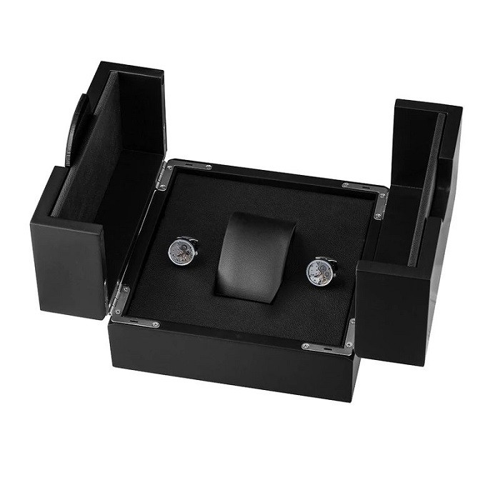 این کمپانی روی این ساعت برای خریداران سنگ تمام گذاشته و در جعبه ای ویژه و لاکچری به همراه دو عدد دکمه سر آستین موتوردار ساعت (که این موتور سوئیسی است و کار میکند!) این ساعت را تقدیم میکند.