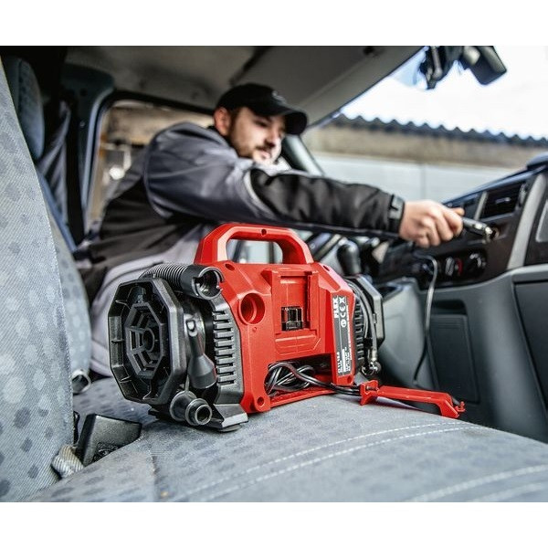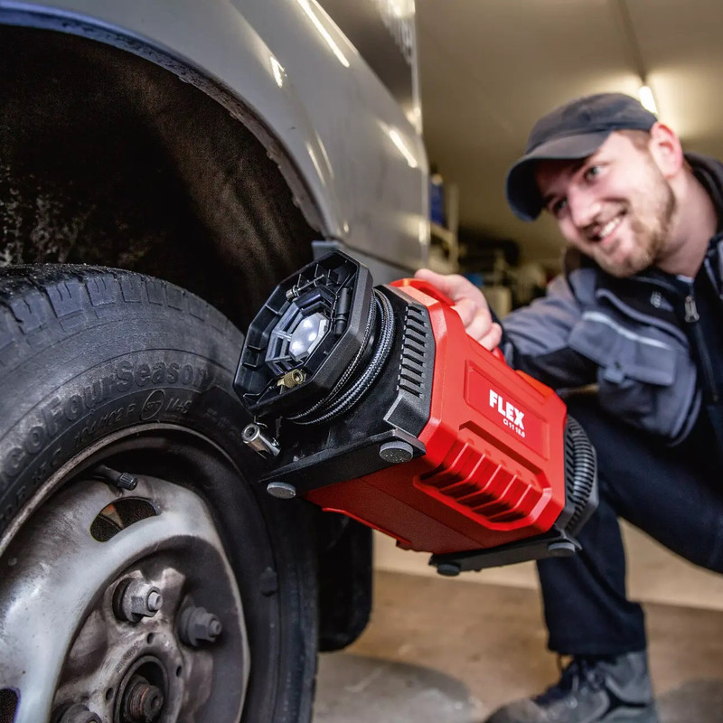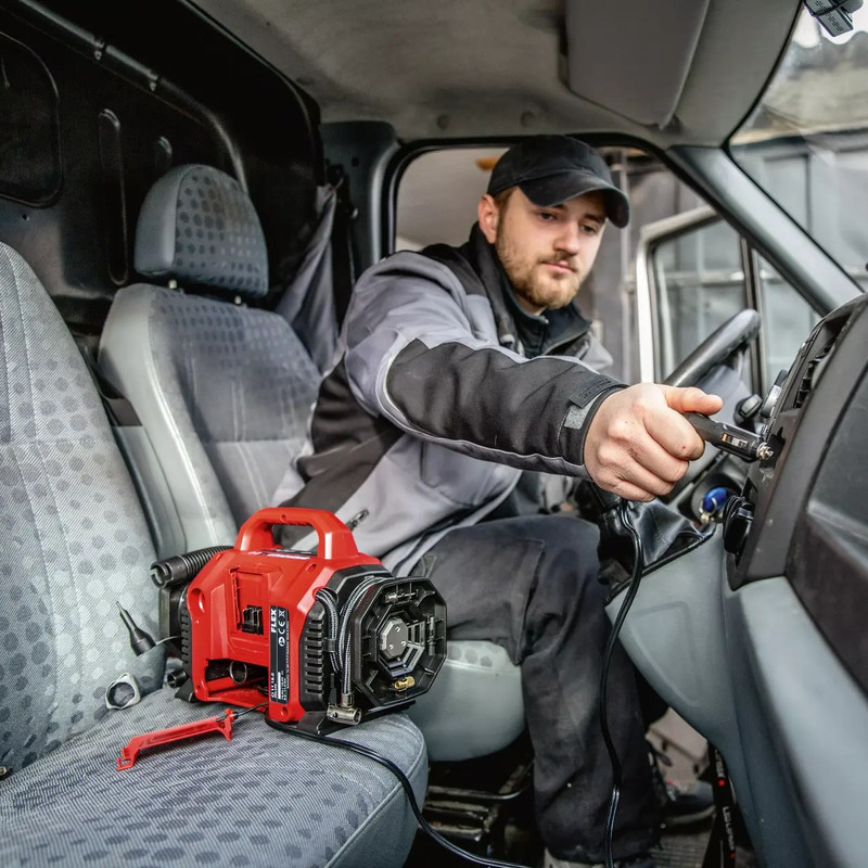 + موارد بیشتردستگاه  CI 11 18.0 V یک کمپرسور هوای حرفه ای از محصولات شرکت «فلکس» (Flex) آلمان با بیش از 100 سال سابقه و مخترع سنگ فرز می باشد. این کمپرسور دارای دو خروجی می باشد. خروجی اول (خروجی فشار بالا) برای باد کردن لاستیک خودرو، لاستیک دوچرخه، انواع توپ مناسب بوده و خروجی دوم (خروجی حجم بالا) برای باد کردن اشیاء حجم بالا نظیر تشک، استخر بادی، قایق بادی و ... مناسب می باشد جهت کاربری این ابزار دو گزینه دارید: یا باید آن را به فندکی 12 ولت خودرو متصل کنید یا آنکه از باتری 18 ولت فلکس استفاده کنید. توجه فرمایید باتری و شارژر همراه این ابزار نبوده و بایستی جداگانه از دیجی کالا خریداری شود. در زمان استفاده از خروجی اول (فشار بالا) فشار مورد نظر با دقت خیلی بالا بر روی این ابزار تنظیم شده و به محض رسیدن به فشار تنظیم شده دستگاه به صورت خودکار خاموش می شود. این ابزار دارای LED شبیه چراغ قوه می باشد. سیستم مدیریت الکترونیکی (EMS) این کمپرسور از دستگاه محافظت می کند، عمر کاری و کارایی را افزایش می دهد. این ابزار دارای سیستم محافظت در مقابل اضافه بار و سیستم پایش دما جهت جلوگیری از سوختن آن و فشار آمدن به موتور آن می باشد. شرکت فلکس در سال 1922 در منطقه Bad Cannstatt نزدیک اشتوتگارت آلمان توسط Ackermann و Schmitt تاسیس گردید. در همان سال سنگ فرز MS6 با شفت Flexible و در سال 1954 اولین سنگ فرز سرعت بالای دنیا تحت عنوان DL9 توسط شرکت فلکس اختراع شد. هم اکنون شرکت فلکس معروفترین و معتبرترین تولید کننده پولیشر برقی و شارژی محسوب گردیده و تخصص آن تولید انواع ابزارآلات برقی و شارژی در صنایع خودرو، کار با فلزات، پرداخت سنگ و ابزارآلات مرتبط با ساخت و ساز و بازسازی می باشد.