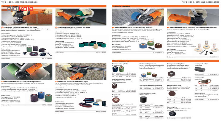1 × غلطک مخصوص 10 × نوار سنباده با دانه بندی 180 10 × نوار سنباده با دانه بندی 120 1 × تسمه پشمی با دانه بندی متوسط 1 × تسمه پشمی با دانه بندی نرم 1 × حلقه نوار چسب