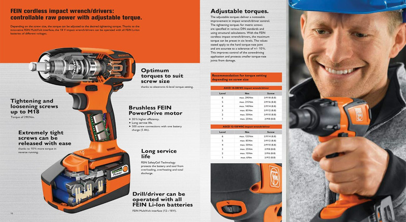 مشاهده محصولات مرتبطشرکت فاین (FEIN) در سال 1867 میلادی در شهر اشتوتگارت آلمان آغاز به کار و در سال 1895 اقدام به اختراع اولین دریل برقی دستی دنیا نمود. علی رغم گذشت 151 سال از شروع تولیدات شرکت فاین، این شرکت قویا به خاستگاه خود یعنی کشور آلمان متعهد بوده و تمامی محصولاتش را در Schwäbisch Gmünd کشور آلمان تولید می نماید.آچار بکس ضربه ای شارژی مدل ASCD 12-150 W8C یک آچار حرفه ای و صنعتی با مشخصات فنی خاص محسوب می گردد. طراحی و ساخت این آچار بکس که تماما ساخت کشور آلمان بوده، جهت کار در شرایط سخت و مداوم می باشد. حداکثر گشتاور این آچار با بهره گیری از موتور بدون ذغال 135 نیوتن متر بوده و این آچار ضربه ای قابلیت تنظیم الکترونیکی گشتاور در 6 مرحله از 6 نیوتن متر تا 135 نیوتن متر را دارد که این قابلیت آن را از بقیه رقبا متمایز می سازد. با تنظیم گشتاور مورد نظر، پیچ یا مهره شما هیچ گاه بریده نشده و گشتاور مناسب به پیچ یا مهره شما اعمال خواهد شد؛ لذا این آچار ضربه ای در طیف وسیعی از کاربری ها از 6 نیوتن متر الی 135 نیوتن متر قابل استفاده خواهد بود و شما را از خرید آچارهای متعدد بی نیاز می سازد. سرعت بدون بار این ابزار 1800-0 دور در دقیقه و نرخ ضربه آن 3600-0 ضربه در دقیقه می باشد. ابزار گیر این آچار بکس 3/8 اینچ است. وزن این آچار بکس با احتساب باتری تنها 1.1 کیلوگرم بوده و انرژی مورد نیاز خود را از باتری لیتیومی 12 ولت با ظرفیت 2.5 آمپر ساعت تامین می کند. داخل کیف پلاستیکی بسیار محکم این ابزار 2 عدد باتری لیتیومی 12 ولت با ظرفیت 2.5 آمپرساعت و یک عدد شارژر سریع به همراه متعلقات اتصال به کمربند وجود دارد.شرکت TCG (گروه مشاوران تهران)، نماینده انحصاری ابزارآلات فاین (FEIN) آلمان در ایران بوده که این نماینده در سایت www.fein.com نیز معرفی شده است. خدمات گارانتی و پس از فروش محصولات فاین (FEIN) در مرکز تعمیرات TCG ارائه می گردد.