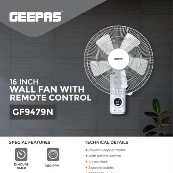 پنکه دیواری کنترل دار جی پاس مدل GF9479N