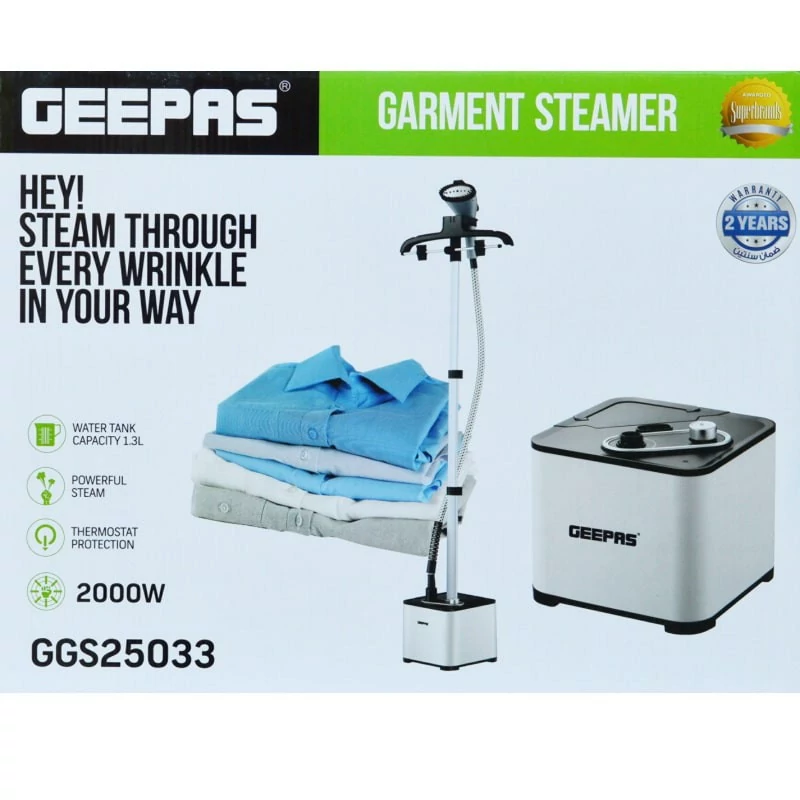 بخارشوی پوشاک Geepas بهترین گزینه برای شماست تا به لباسهایتان ظاهری حرفهای و بدون چروک ببخشید. تنها 35 تا 45 ثانیه طول می کشد تا گرم شود و بخار با دمای بالا برای از بین بردن چین و چروک ها تولید می کند، ساخته شده از مواد با کیفیت و مجهز به پیشرفته ترین تکنولوژی و لوازم جانبی نهایی، تولید بخار فوق گرم مداوم و بخار کردن چروک های سریع و شاداب کننده پارچه ها. . با استفاده از این بخار پز آسان، چین و چروک های لباس و سایر پارچه ها مانند مبلمان و پرده را به سرعت پاک کنید. استفاده آسان یک مخزن 1.3 لیتری بخار کافی برای پوشاک زیاد می دهد و قدرت 2000 وات مطمئنا این کار را انجام می دهد.