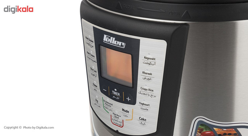 + موارد بیشترزودپز برقی «فلر» مدل «PC165» دستگاه همهکاره برای پخت غذا است. کافی است مواد غذایی را داخل آن قرار دهید تنظیمات را انجام داده و کمی صبر کنید تا غذا آماده شود. زودپز برقی فلر PC165 دارای تنظیمات گستردهای برای پخت انواع غذا در حالت بهینه مصرف است. با تنظیم میزان فشار در سه حالت کم، استاندارد، زیاد میتوان مقدار فشار داخل دستگاه را تنظیم کرد که با این عملکرد مدتزمان پخت هم تحت کنترل درمیآید. امکان استفاده از تایمر هم میتواند در این امر دخیل شود. تنظیمات پیشفرض برای پخت برنج با تهدیگ، تهیه ماست، پنیر، آبگوشت، انواع خورش، سوپ، حلیم، مرغ و گوشت، ماهیچه، حبوبات تنها با یک دکمه قابل انتخاب است. قابلیت پخت کیک و سرخ کردن هم در این دستگاه وجود دارد. این وسیله گزینهای بسیار مناسب برای تمام خانوادهها و حتی افراد تنها است که بهراحتی در وقت صرفهجویی میکند و نتیجه مطلوبی ایجاد میکند. امکان بسته شدن در زودپز بهراحتی انجام میشود و مکانیسم بست و باز آن طوری طراحیشده است که حتی با یک دست هم میتوان اقدام به باز و بست آن کرد. سوپاپ اطمینان و مکانیسمهای ایمنی این دستگاه، یک آشپزی ایمن را به ارمغان میآورد. بدنه این دستگاه از استیل ضدزنگ بوده و ظرف پخت این دستگاه روکش نچسب دارد و نگرانی از بابت چسبیدن مواد غذایی وجود ندارد. ظرفیت بالای این دستگاه امکان پخت برای خانوادههای پرجمعیت را هم فراهم میآورد. مصرف برق این دستگاه پایین است تا جایی که در رده مصرف انرژی B تا A قرار میگیرد. صفحه نمایشگر این زودپز اعداد و تنظیمات را باکیفیت و وضوح نمایش میدهد.لازم به ذکر است شرکت فلر، یک برند آلمانی درزمینهٔ تولید و عرضه لوازمخانگی است. محصولات این شرکت، طیف گستردهای از لوازمخانگی را در برمیگیرد: ماکروویو، آون برقی، چایساز، قهوهساز، کبابپز، ساندویچساز، پلوپز، آرامپز، سرخکن، چرخگوشت، غذاساز، جاروبرقی، اتو و غیره. مراکز گسترده خدمات پس از فروش و شبکه وسیع عرضه محصولات و نیز قیمت مناسب کالاها، از امتیازات ویژه محصولات فلر به شمار میآیند.