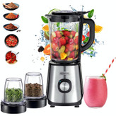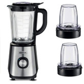 سایر توضیحات : عملکرد ها : مخلوط کن و دو عدد آسیاب توان : 1000 وات تنظیمات سرعت : 2 سرعته ظرفیت پارچ مخلوط کن : 1.5 لیتر جنس پارچ مخلوط کن : شیشه