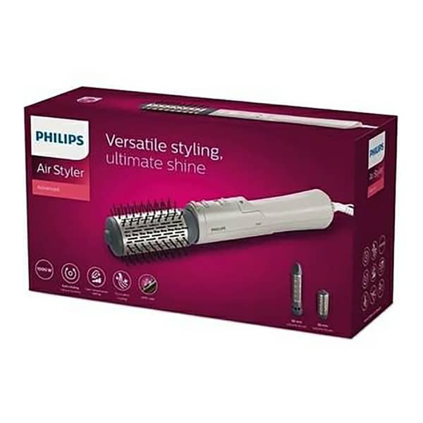 سشوار دارای 2 سر میباشد ( یک سر چرخشی 50 میل و یک سر ثابت 30 میل ) ا- ایونیک - سیم گردان - 1000 وات - چپ گرد و راست گرد - 3 تنظیم سرعت -سرامیک تورمالین -