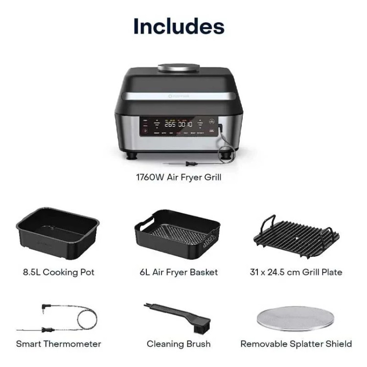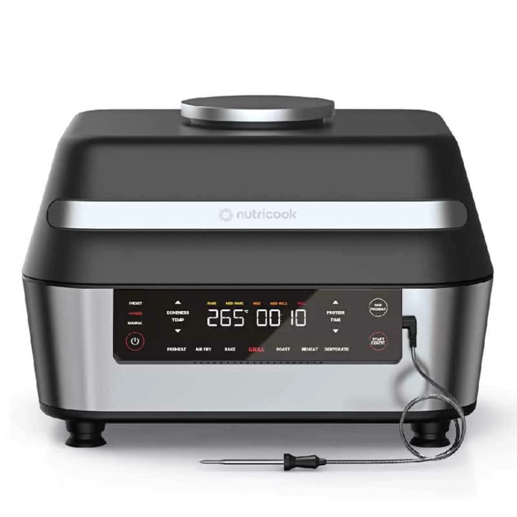 - مجهز به دماسنج هوشمند با امکان تنظیم دمای پخت ایده آل برای 5 نوع پروتئین گوشت گاو، بره، مرغ، ماهی و سبزیجات،