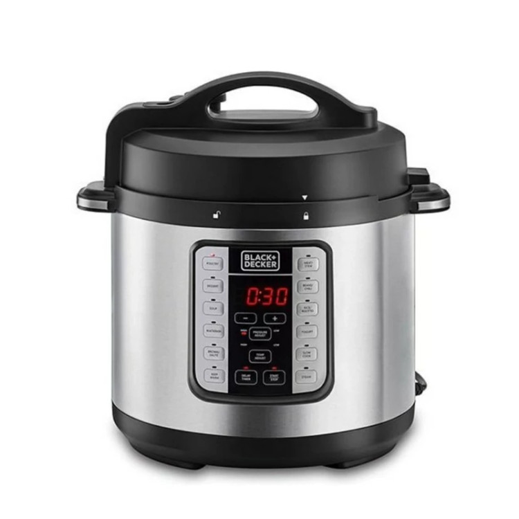 زودپز 10 لیتری بلک اند دکر مدل PCP1010-B5 یک دستگاه همه کاره 9 در 1 است که با توان 1350 وات کار می کند و می تواند طیف وسیعی از عملکردهای پخت و پز را انجام دهد. این ویژگی مواد مغذی و طعم طبیعی مواد شما را حفظ می کند. قابلمه آلومینیومی نیز سطحی نچسب دارد. ظرفیت 10 لیتری آن برای تهیه وعده های غذایی تا 12 نفر ایده آل است و محفظه ضد زنگ درجه یک آن جلوه تزئینی به هر آشپزخانه ای می بخشد. این دستگاه با 14 برنامه هوشمند و شیر دو منظوره تخلیه بخار، حدس و گمان را از پختن دستور العمل های مورد علاقه شما حذف می نماید. زودپز کاربرپسند بلک اند دیکر با تنظیمات دقیق دما و تایمر خود، کنترل پخت و پز را به دستان شما می سپارد. صفحه نمایش دیجیتال LED به شما این امکان را می دهد که زمان و دمای پخت و پز را به راحتی تنظیم کنید. بطوریکه تایمر پخت و پز را می توان تا 12 ساعت و با تاخیر تا 4 ساعت تعیین کرد. همچنین به لطف عملکرد گرم نگه دارنده، غذاها بعد از اتمام پخت، گرم و آماده سرو خواهد بود. ایمن و آسان برای استفاده! مولتی کوکر Black and Decker PCP 1010-B5 با در نظر گرفتن ایمنی طراحی شده و دارای 9 مکانیسم داخلی برای استفاده بدون نگرانی می باشد. مکانیسم قفل درب، از باز شدن تصادفی در حین پخت و پز جلوگیری و شیر تخلیه فشار عملکرد امنیت آن را تضمین می کند. قسمت بیرونی قابلمه حتی در هنگام استفاده خنک می ماند و مانع از سوختگی و تماس تصادفی با آن می شود. قطعات قابل جدا شدن در ماشین ظرفشویی قابل شستشو هستند و به راحتی قابل تمیز کردن می باشد.