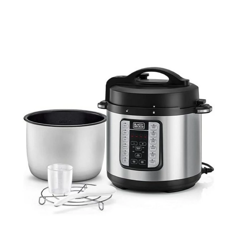 زودپز 10 لیتری بلک اند دکر مدل PCP1010-B5 یک دستگاه همه کاره 9 در 1 است که با توان 1350 وات کار می کند و می تواند طیف وسیعی از عملکردهای پخت و پز را انجام دهد. این ویژگی مواد مغذی و طعم طبیعی مواد شما را حفظ می کند. قابلمه آلومینیومی نیز سطحی نچسب دارد. ظرفیت 10 لیتری آن برای تهیه وعده های غذایی تا 12 نفر ایده آل است و محفظه ضد زنگ درجه یک آن جلوه تزئینی به هر آشپزخانه ای می بخشد. این دستگاه با 14 برنامه هوشمند و شیر دو منظوره تخلیه بخار، حدس و گمان را از پختن دستور العمل های مورد علاقه شما حذف می نماید. زودپز کاربرپسند بلک اند دیکر با تنظیمات دقیق دما و تایمر خود، کنترل پخت و پز را به دستان شما می سپارد. صفحه نمایش دیجیتال LED به شما این امکان را می دهد که زمان و دمای پخت و پز را به راحتی تنظیم کنید. بطوریکه تایمر پخت و پز را می توان تا 12 ساعت و با تاخیر تا 4 ساعت تعیین کرد. همچنین به لطف عملکرد گرم نگه دارنده، غذاها بعد از اتمام پخت، گرم و آماده سرو خواهد بود. ایمن و آسان برای استفاده! مولتی کوکر Black and Decker PCP 1010-B5 با در نظر گرفتن ایمنی طراحی شده و دارای 9 مکانیسم داخلی برای استفاده بدون نگرانی می باشد. مکانیسم قفل درب، از باز شدن تصادفی در حین پخت و پز جلوگیری و شیر تخلیه فشار عملکرد امنیت آن را تضمین می کند. قسمت بیرونی قابلمه حتی در هنگام استفاده خنک می ماند و مانع از سوختگی و تماس تصادفی با آن می شود. قطعات قابل جدا شدن در ماشین ظرفشویی قابل شستشو هستند و به راحتی قابل تمیز کردن می باشد.