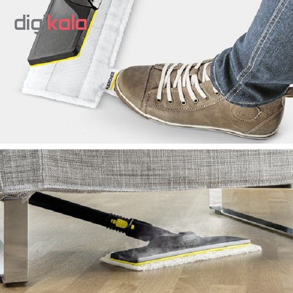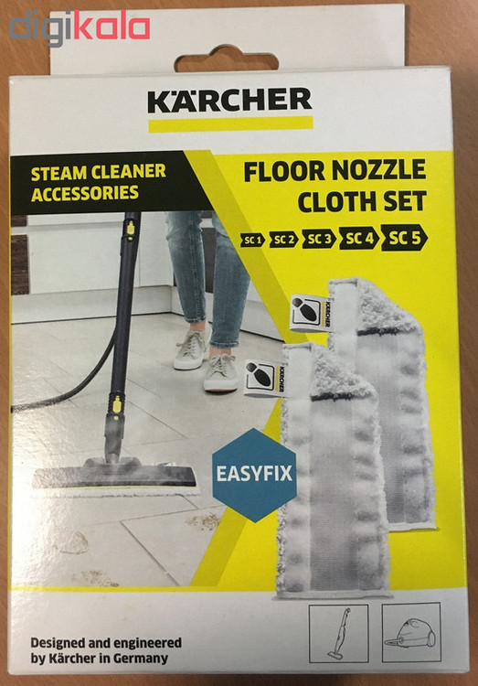 حوله تمیز کننده کف EasyFix شامل دو حوله کف با جذب و استقامت بالا است که از میکروفیبر با کیفیت پوشیده شده است. این حوله ها مناسب نازل (nozzle) زمین شویی کرشر (Kärcher) مدل EasyFix هستند. با استفاده از این حوله ها نظافت عالی و بهداشتی سطوح سخت,گوشه ها و لبه ها بدون زحمت انجام می شود. به لطف سیستم قلاب و حلقه ، حوله های EasyFix می توانند به سرعت و به راحتی به نازل بخارشو متصل شوند: به سادگی حوله تمیز کننده کف را روی نازل کف EasyFix فشار دهید و آماده استفاده است. بعد از تمیز کردن ، حوله کف میکروفیبر را بدون نیاز به تماس با آلودگی می توانید از نازل کف EasyFix جدا کنید: کافی است بر روی بند پایه وصل شده به حوله قدم بگذارید و نازل کف را از بالا و پایین بکشید. این محصول مخصوص مدل های سری جدید ایزی فیکس SC1,SC2,SC3,SC4,SC5 میباشد و در اصطلاح به صورت چسبی است .