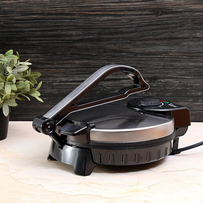 مشاهده محصولات مرتبطبرند جیپاس GEEPAS یکی از عرضه کنندگان لوازم خانگی و برقی است که با بیش از 36 سال تجربه ، در اغلب قاره ها اعم از آسیا و اروپا از استقبال بسیار خوبی برخوردار بوده است.دستگاه نان پز جیپاس مدل GCM6125 یکی از محصولات این شرکت است که می تواند برای پخت نان در منزل و یا رستوران های کوچک به کار گرفته شود . قسمت اصلی دستگاه از دو کفه دایروی 10 اینچی ( 25.4 سانتی ) با روکش نچسب که هر دو سطح از سیستم گرمایش بطور مجزا برخوردارند تشکیل شده است (سطح پایینی و بالایی یا گریل ) که با قرار دادن خمیر در میان دوسطح و قراردادن دوکفه بر روی آن که با یک اهرم بر روی هم فشرده می شوند خمیر صاف و آماده برای پخت می شود و نیازی به پهن کردن بر روی کفه نمی باشد . با تنظیم دمای ترموستات می توان گرمای مورد نیاز را با توجه به نوع پخت در دستگاه ایجاد کرده و بعد از مدت زمان چند دقیقه که این زمان به سلیقه شخصی می تواند از نان با پخت نرم تا برشته تغییر کند ، نان قابل استفاده خواهد بود .