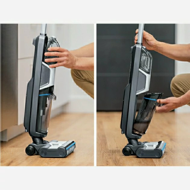 این دستگاه همزمان قابلیت جارو کردن و شستشو را دارد و با توجه به داشتن دو مخزن، یکی برای آب تمیز جهت شستشوی کف و یکی برای آب کثیف و جمع آوری گرد و غبار، در کمترین زمان زباله های تر و خشک را جمع میکند