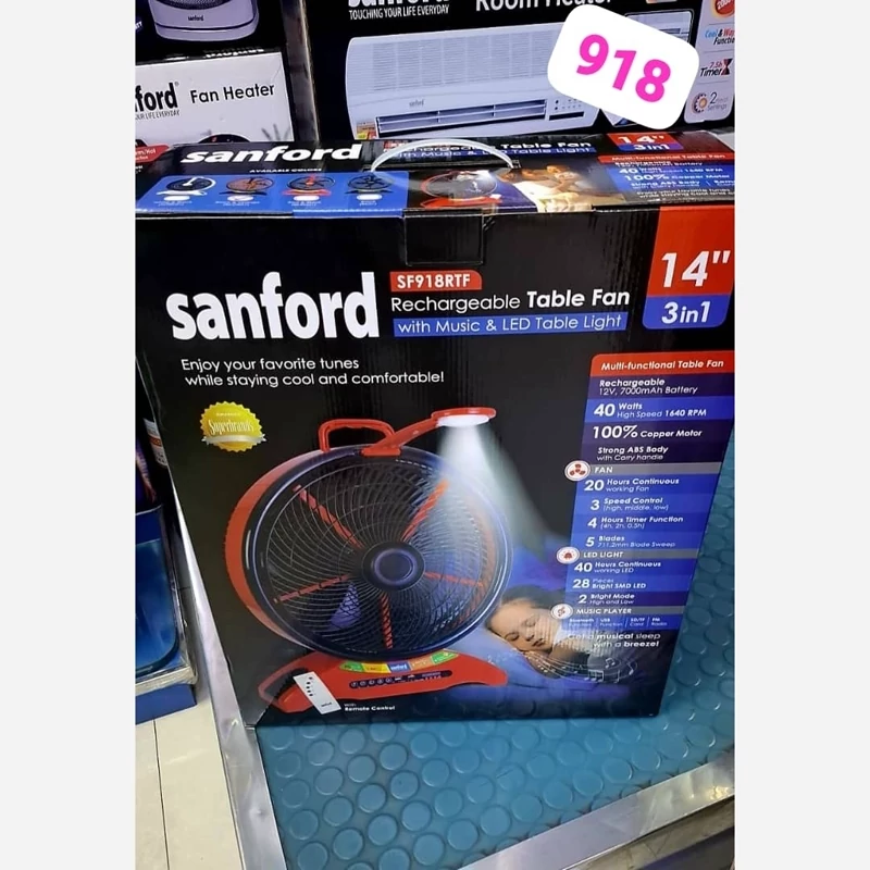 پنکه شارژی 3کاره سانفورد ، موزیکال و چراغ روشنایی جلو مدل 918