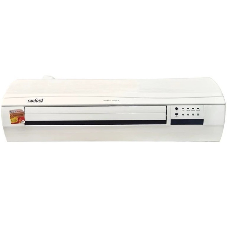 برند سانفورد با دارا بودن بیش از 1000 کالا در زمینه لوازم خانگی یکی از برند های معتبر در آسیا و اروپا محسوب می شود . فن هیتر دیواری طرح اسپلیت سانفورد مدل SF1221 یکی از دستگاههای بسیار مناسب برای تامین گرمایش در منزل و محل کار و یا هر مکان دیگر است. دلایل این برتری را در زیر می آوریم . این فن هیتر قابلیت تنظیم اتوماتیک حرارت را در دمایی که توسط کاربر تعیین شده و بر روی پنل دستگاه هم نشان داده می شود ، را دارد همچنین در دو توان 1000 و 2000 وات قابل تنظیم می توان آن را قرار داد.تایمر 8 ساعته دستگاه امکان بسیار خوبی برای کاربر می باشد تا بعد از ساعت معینی دستگاه را بطور خودکار خاموش کند. نصب دستگاه بسیار اسان بوده و بر روی دیوار چوبی و یا هر دیوار دیگری با دو پیچ قابل نصب است . با ریموت کنترل می توان تنظیمات دستگاه را انجام داده و آن را کنترل کرد .سیستم حفاظتی قطع اتوماjتیک در اثر افزایش دما نیز از امکانات ایمنی آن می باشد .بعد از خاموش کردن هیتر ، فن دستگاه ( بدون گرمایش )به مدت 30 ثانیه کار می کند تا حرارت مانده در قطعه گرم کننده را از دستگاه خارج کند . دقت شود که با تنظیم دما توسط ریموت کنترل و یا از روی پنل دمای نشان داده شده همان دمای تنطیم شده می باشد اما بعد از 3 ثانیه دمای محیط نشان داده می شود و این فقط برای نمایش دما است و دمای تنظیم شده همان است که در لحظه تنظیم مشاهده شده است. همچنین دقت شود با توجه به قرار گرفتن این دستگاه بر روی دیوار و ارتفاع بیش از یک و نیم متر و یا هر مقدار دیگر ، دمای تنظیم باید بالاتر باشد از دمایی که تمایل دارید در پایین اتاق و یا هر مکان بسته دیگر داشته باشید چون هوای گرم سبک تر است و قسمت بالاتر اتاق همیشه گرم تر خواهد بود . این مقدار را باید با توجه به ارتفاع قرار داده شده و محل قرار گیری با تجربه بدست بیاورید بعنوان مثال وقتی دستگاه را در ارتفاع 2 متر از کف اتاق نصب می کنید برای اینکه ارتفاع نیم متری از کف اتاق دمای 25 درجه داشته باشد باید تنظیم را روی 32 یا 33 قرار بدهید و یا کمی بالاتر و یا پایین تر ، که این مقادیر با تجربه بدست می آید .