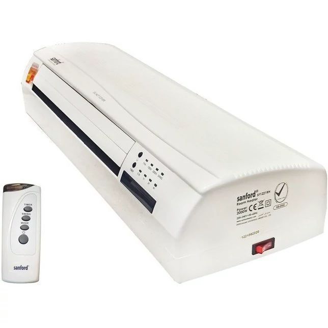 برند سانفورد با دارا بودن بیش از 1000 کالا در زمینه لوازم خانگی یکی از برند های معتبر در آسیا و اروپا محسوب می شود . فن هیتر دیواری طرح اسپلیت سانفورد مدل SF1221 یکی از دستگاههای بسیار مناسب برای تامین گرمایش در منزل و محل کار و یا هر مکان دیگر است. دلایل این برتری را در زیر می آوریم . این فن هیتر قابلیت تنظیم اتوماتیک حرارت را در دمایی که توسط کاربر تعیین شده و بر روی پنل دستگاه هم نشان داده می شود ، را دارد همچنین در دو توان 1000 و 2000 وات قابل تنظیم می توان آن را قرار داد.تایمر 8 ساعته دستگاه امکان بسیار خوبی برای کاربر می باشد تا بعد از ساعت معینی دستگاه را بطور خودکار خاموش کند. نصب دستگاه بسیار اسان بوده و بر روی دیوار چوبی و یا هر دیوار دیگری با دو پیچ قابل نصب است . با ریموت کنترل می توان تنظیمات دستگاه را انجام داده و آن را کنترل کرد .سیستم حفاظتی قطع اتوماjتیک در اثر افزایش دما نیز از امکانات ایمنی آن می باشد .بعد از خاموش کردن هیتر ، فن دستگاه ( بدون گرمایش )به مدت 30 ثانیه کار می کند تا حرارت مانده در قطعه گرم کننده را از دستگاه خارج کند . دقت شود که با تنظیم دما توسط ریموت کنترل و یا از روی پنل دمای نشان داده شده همان دمای تنطیم شده می باشد اما بعد از 3 ثانیه دمای محیط نشان داده می شود و این فقط برای نمایش دما است و دمای تنظیم شده همان است که در لحظه تنظیم مشاهده شده است. همچنین دقت شود با توجه به قرار گرفتن این دستگاه بر روی دیوار و ارتفاع بیش از یک و نیم متر و یا هر مقدار دیگر ، دمای تنظیم باید بالاتر باشد از دمایی که تمایل دارید در پایین اتاق و یا هر مکان بسته دیگر داشته باشید چون هوای گرم سبک تر است و قسمت بالاتر اتاق همیشه گرم تر خواهد بود . این مقدار را باید با توجه به ارتفاع قرار داده شده و محل قرار گیری با تجربه بدست بیاورید بعنوان مثال وقتی دستگاه را در ارتفاع 2 متر از کف اتاق نصب می کنید برای اینکه ارتفاع نیم متری از کف اتاق دمای 25 درجه داشته باشد باید تنظیم را روی 32 یا 33 قرار بدهید و یا کمی بالاتر و یا پایین تر ، که این مقادیر با تجربه بدست می آید .