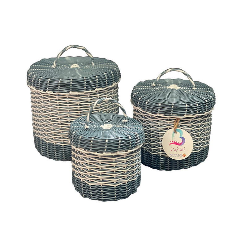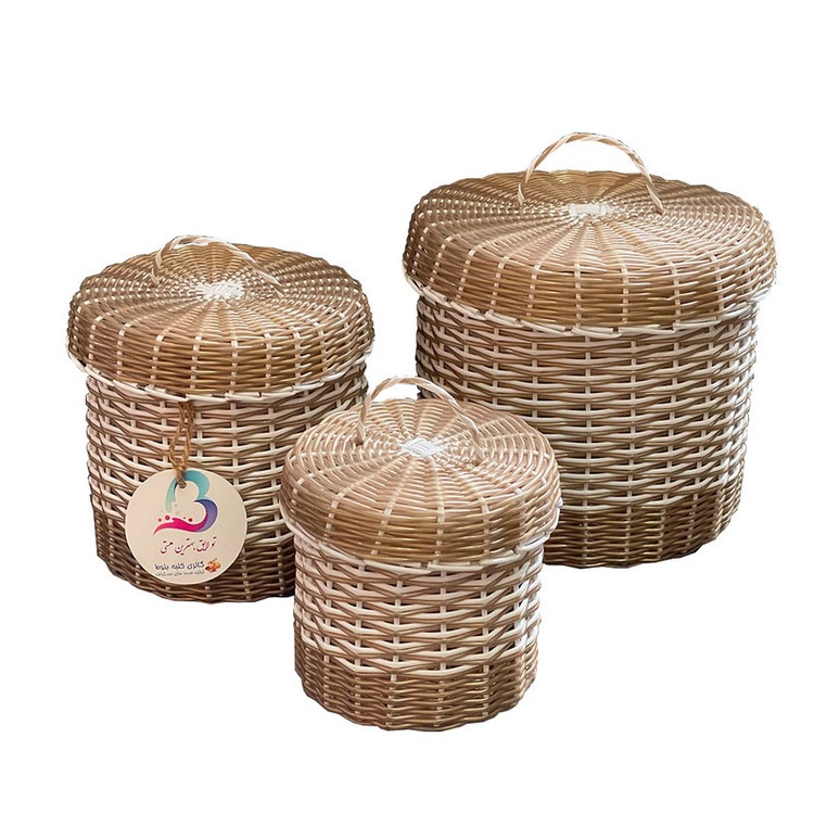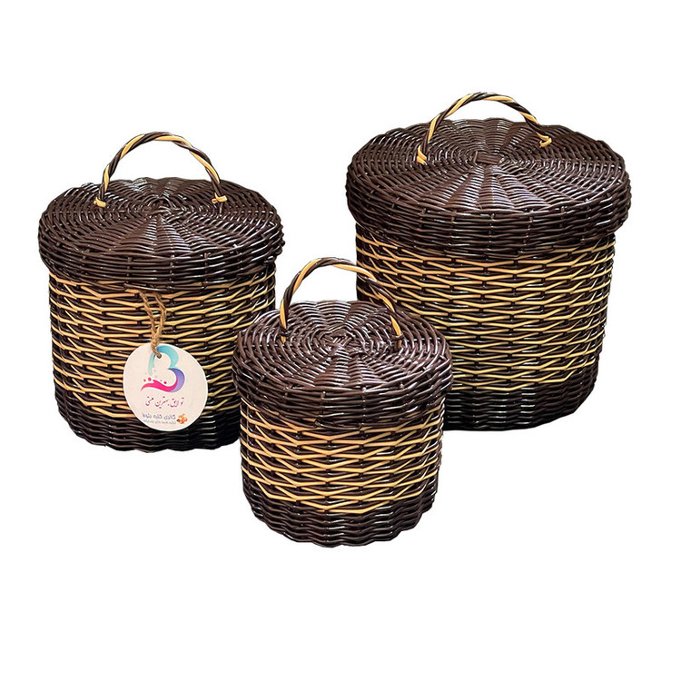 سبد حصیر بافی کلبه بلوط مدل نارگون مجموعه 3 عددی