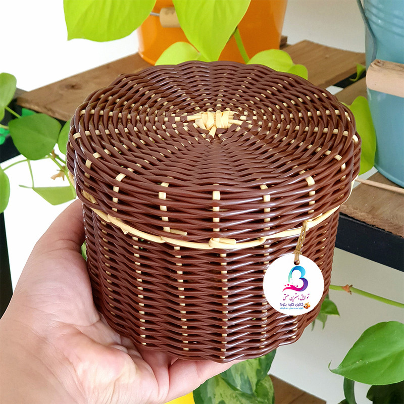 سبد حصیر بافی کلبه بلوط مدل هورا یک سبد دستبافت می باشد که توسط بانوان هنرمند طرقبه بافته می شود این سبد دستبافت از حصیر های مصنوعی که از جنس پلاستیک در رنگ بندی مختلف و طرح های زیبا بافته می شود از این سبد می توان به عنوان جا نخ و سوزن / لوازم آرایشی و.....استفاده کرد
