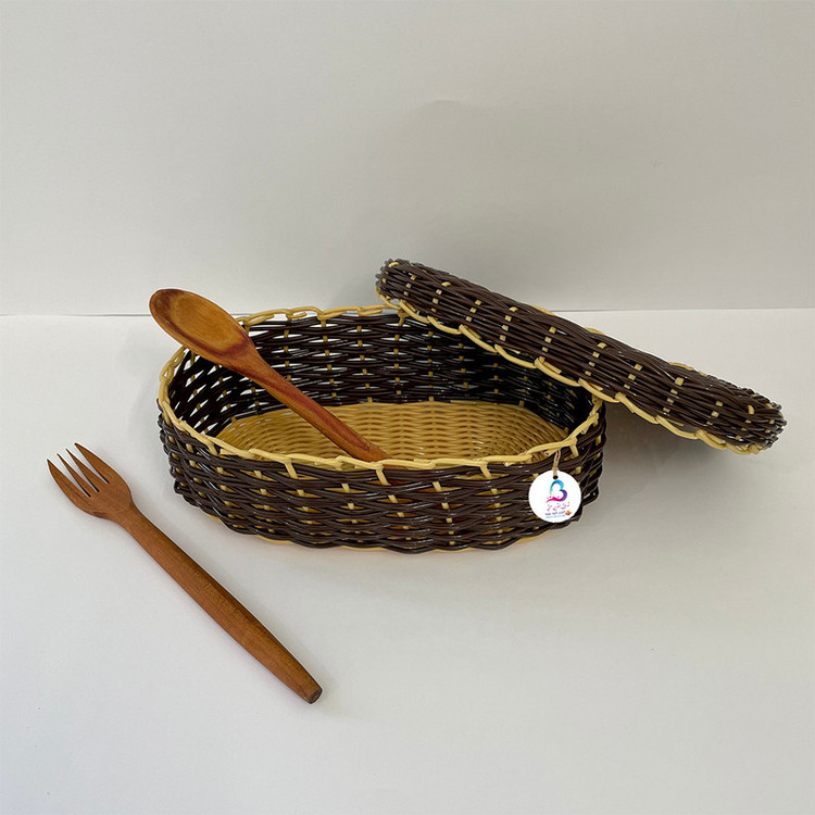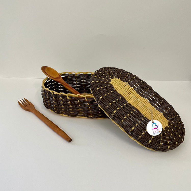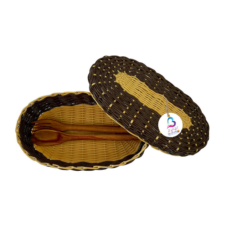 سبد حصیر بافی کلبه بلوط مدل آوا یک سبد دستبافت می باشد که توسط بانوان هنرمند طرقبه بافته می شود این سبد دستبافت از حصیر های مصنوعی که از جنس پلاستیک در رنگ بندی مختلف و طرح های زیبا بافته می شود از این سبد می توان به عنوان جای قاشقی و چنگال و چاقو و ....استفاده کرد