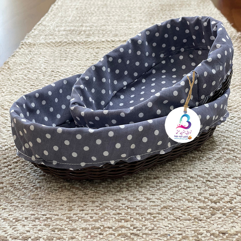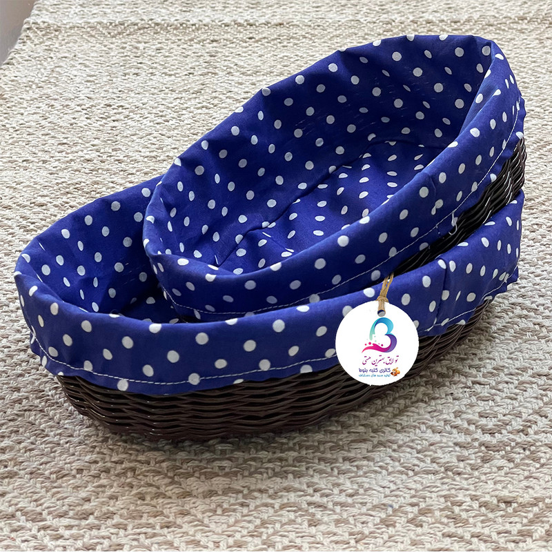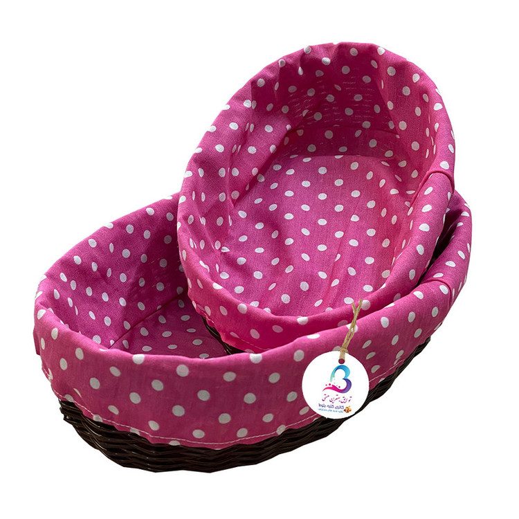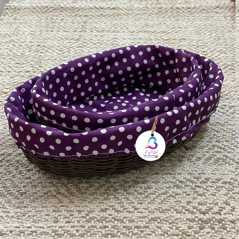 سبد نان و سبزی مدل ارغوان مجموعه دو عددی میباشد که توسط بانوان هنرمند طرقبه بافته می شود این سبد برای نان و سبزی مناسب می باشد پارچه داخل سبد از تترون با کیفیت می باشد که قابلیت شستشو دارد