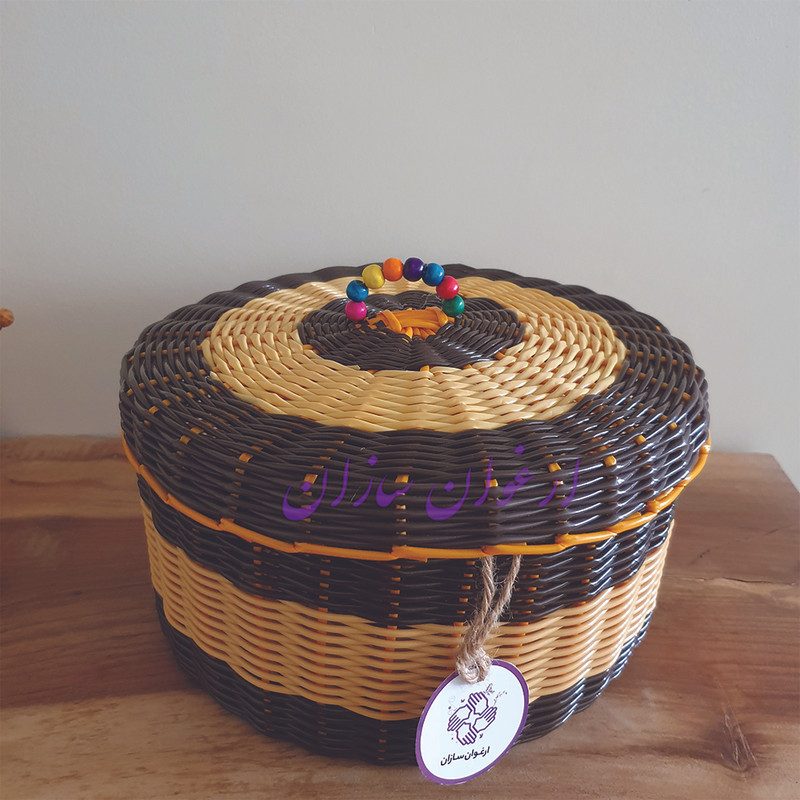 سبد حصیر بافی ارغوان سازان مدل آسمان یک سبد دستبافت می باشد که توسط بانوان هنرمندایران زمین بافته می شود این سبد دستبافت از حصیر های مصنوعی که از جنس پلاستیک در رنگ بندی مختلف و طرح های زیبا بافته می شود از این سبد می توان به عنوان جای نان و سبزی , تخم مرغ و ....استفاده کرد
