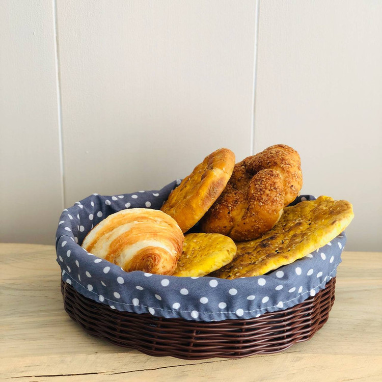 سبد نان ارغوان مدل هیوا که توسط بانوان هنرمند طرقبه بافته می شود این سبد برای نان و میوه مناسب می باشد پارچه داخل سبد از تترون با کیفیت می باشد و که قابلیت شستشو نیز دارد