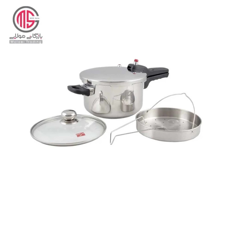 ویژگی زودپز : ،سبد بخارپز،در پیرکس،کف سه لایه،دستگیره بلند