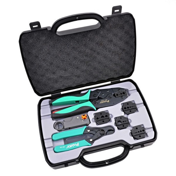 پرس فیش BNC طول پرس 22 سانتی متر با وزن 500 گرم دارای 5 فک 60 گرمی در طول 4 سانتی متر دارای کابل بر 16 سانتی متری ، کابل لخت کن و یک عدد چهارسو 125*1 به همراه کیف حمل