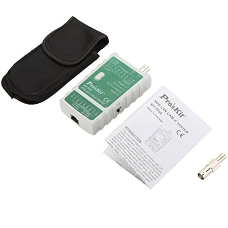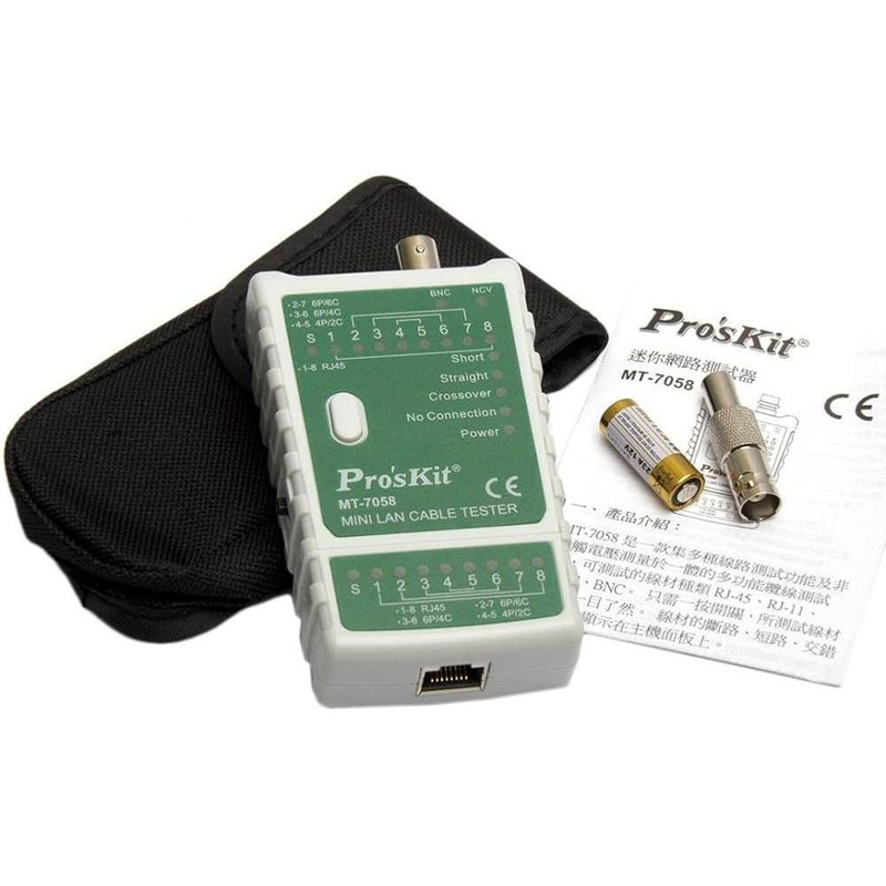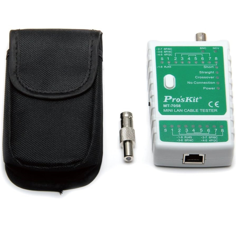 تستر شبکه پروسکیت مدل MT-7058 برای تست کابل شبکه RJ11 و RJ45 کاربرد گسترده دارد .تستر شبکه پروسکیت دارای نشانگر وضعیت LED ، بررسی خودکار وضعیت مدار باز و مدار اتصال کوتاه ،قابلیت خاموشی خودکار ، نشانگر وضعیت باتری کم از امکانات این تستر شبکه می باشد.