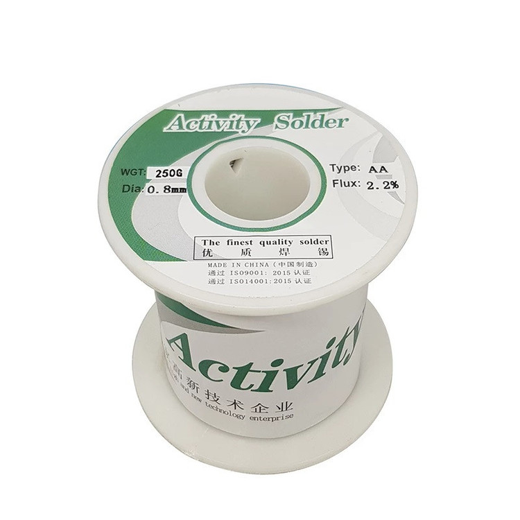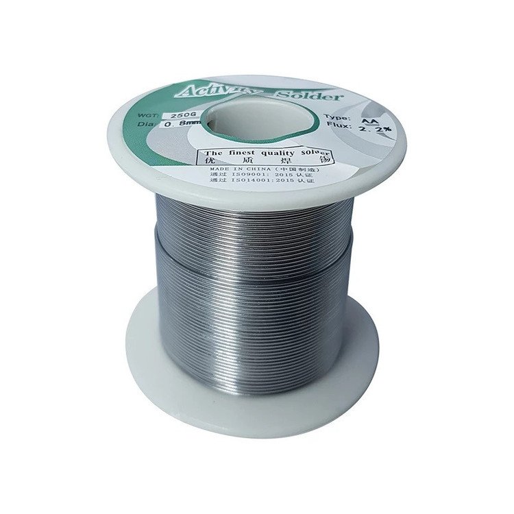- سیم لحیم بسته 500 گرمی - وزن خالص سیم لحیم تقریبا 490گرم - قطر سیم 0.8 میلیمتر - آلیاژ 63% قلع و 37% سرب - کانال مرکزی سیم حاوی روغن لحیم